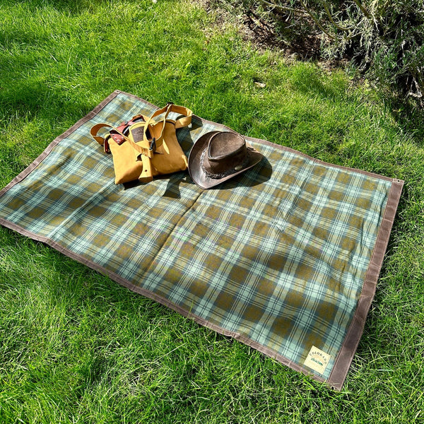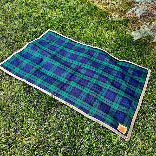 Extra Large Heavyweight Waxed Canvas and Ancient Blackwatch Tartan Wool Lined Bushcraft Ground Cloth