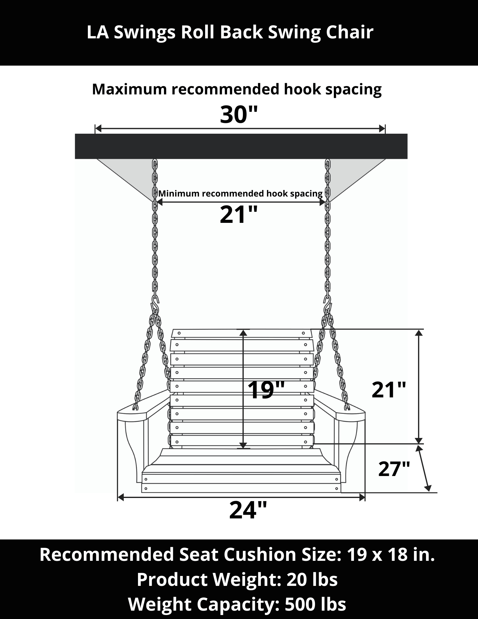 The LA Swings Roll Back Swing Chair features durable cypress wood for years of satisfaction. With a rolled front and backrest, contoured seat, and 1 inch thick slats, this one-person swing provides ultimate comfort. Made in the USA with galvanized and zinc plated hardware, it also includes necessary assembly hardware.