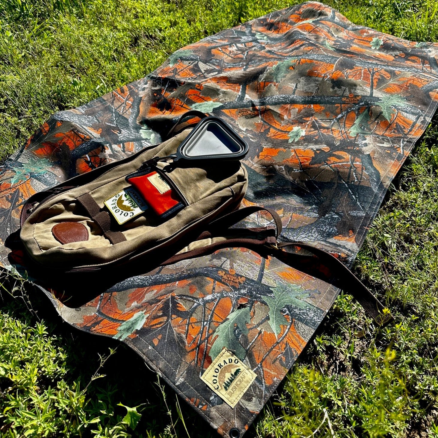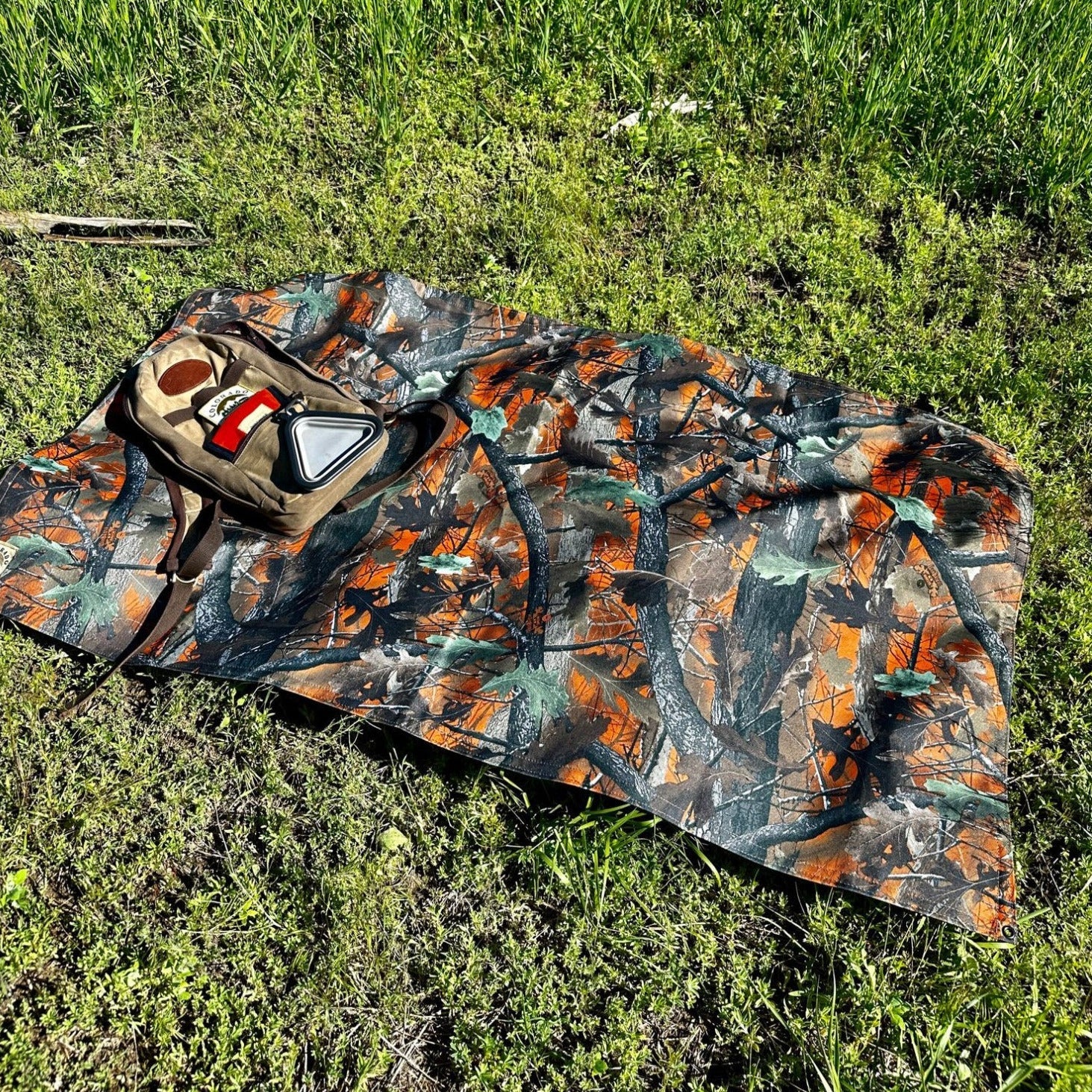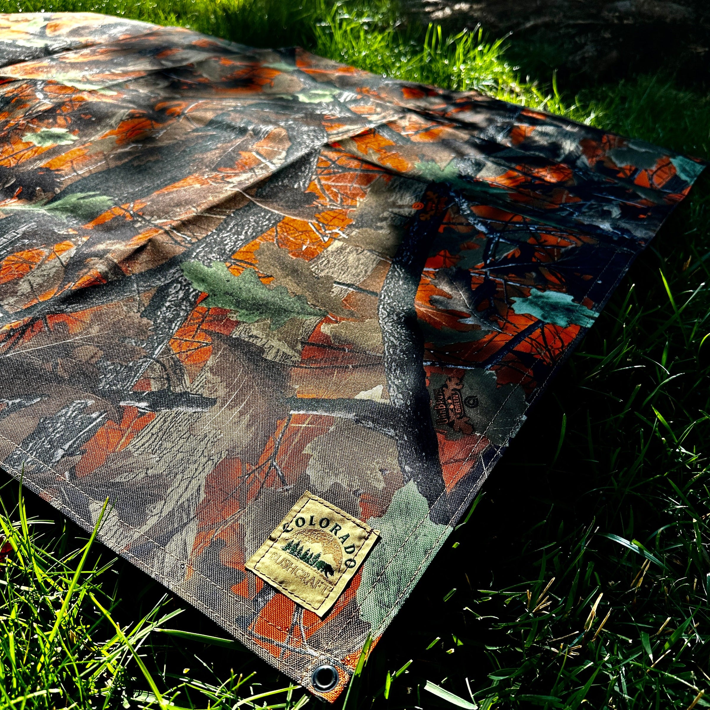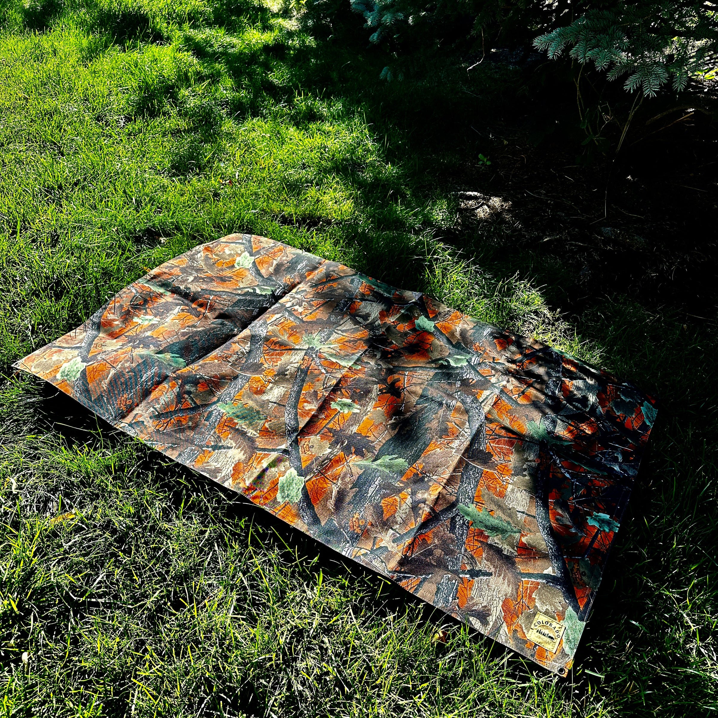 This extra large size Cordura 600D nylon ground cloth is a great light weight piece of kit for your bushcraft adventures. It is made of Oak Brush Blaze camouflage USA made Cordura 600D nylon and highly water resistant with a PVC backing.  Great for a day pack or when you just don't want to haul around a big honking piece of canvas.  It is 56” long by 36” wide.