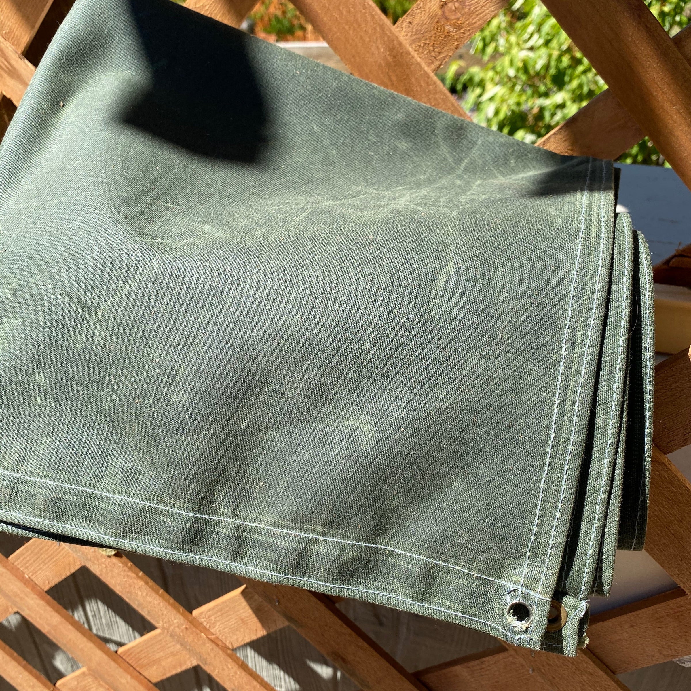 This olive color medium size waxed canvas ground cloth is the perfect piece of kit for your bushcraft adventures. It is made of 14.1 oz waxed canvas and highly water resistant. It stands up well against wet and dirty ground.  One side is lined with a 100% cotton woodland scene for a pop of old world style.  This ground cloth was designed to go on the ground so you can rest your backpack and have a place to kneel or sit that is dry. It comes in a variety of colors and features four eyelets for hanging, creating a log hauler, or even making a bushcraft chair.  It is also has hundreds of other uses.  We use it for: