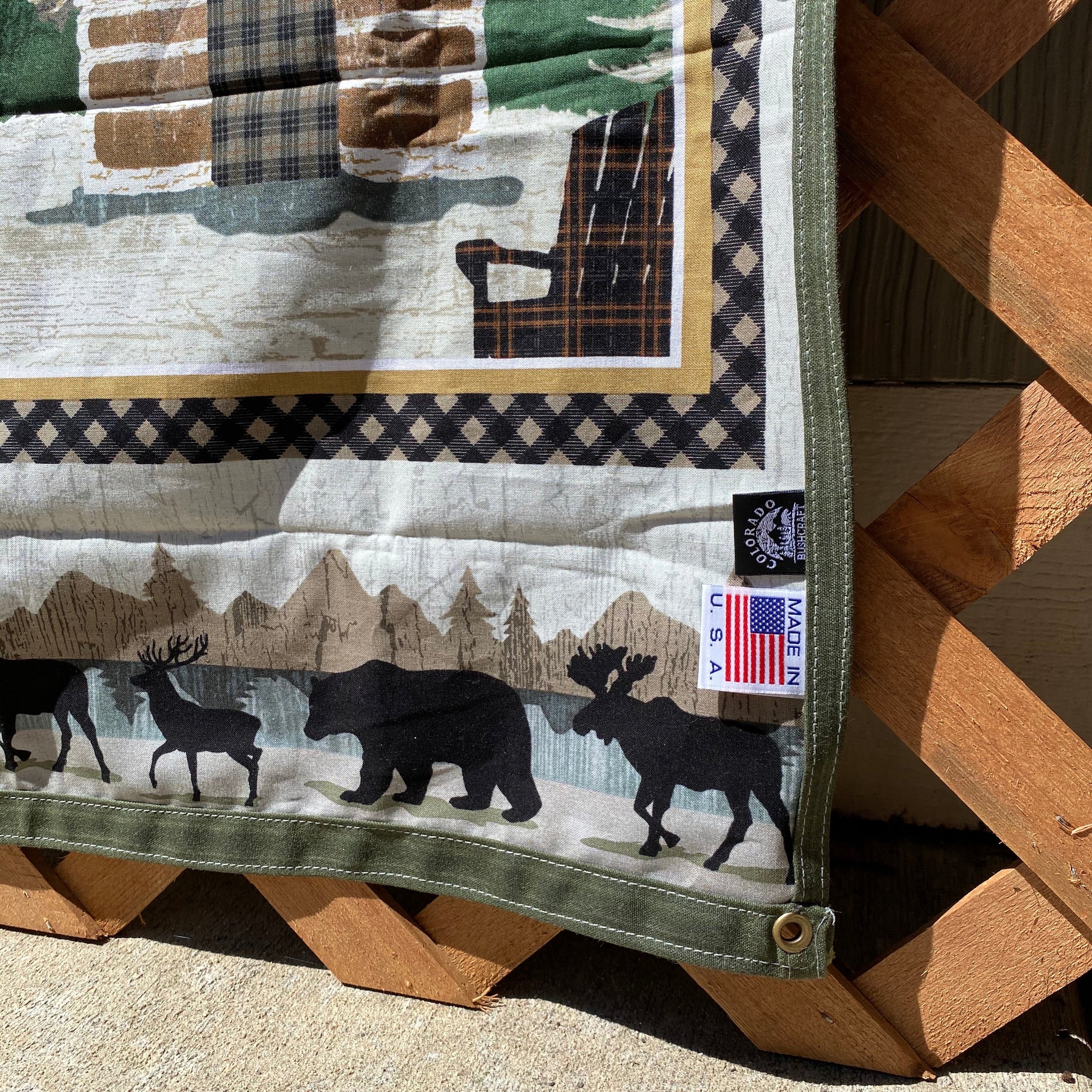 Each ground cloth is designed, created, and assembled in our small shop in colorful Colorado, USA.  Every item is handcrafted and no two are exactly alike but all are made with great care and craftsmanship to last you a lifetime.  Slight imperfections are part of the charm.  This is a great item that will be passed down for generations.