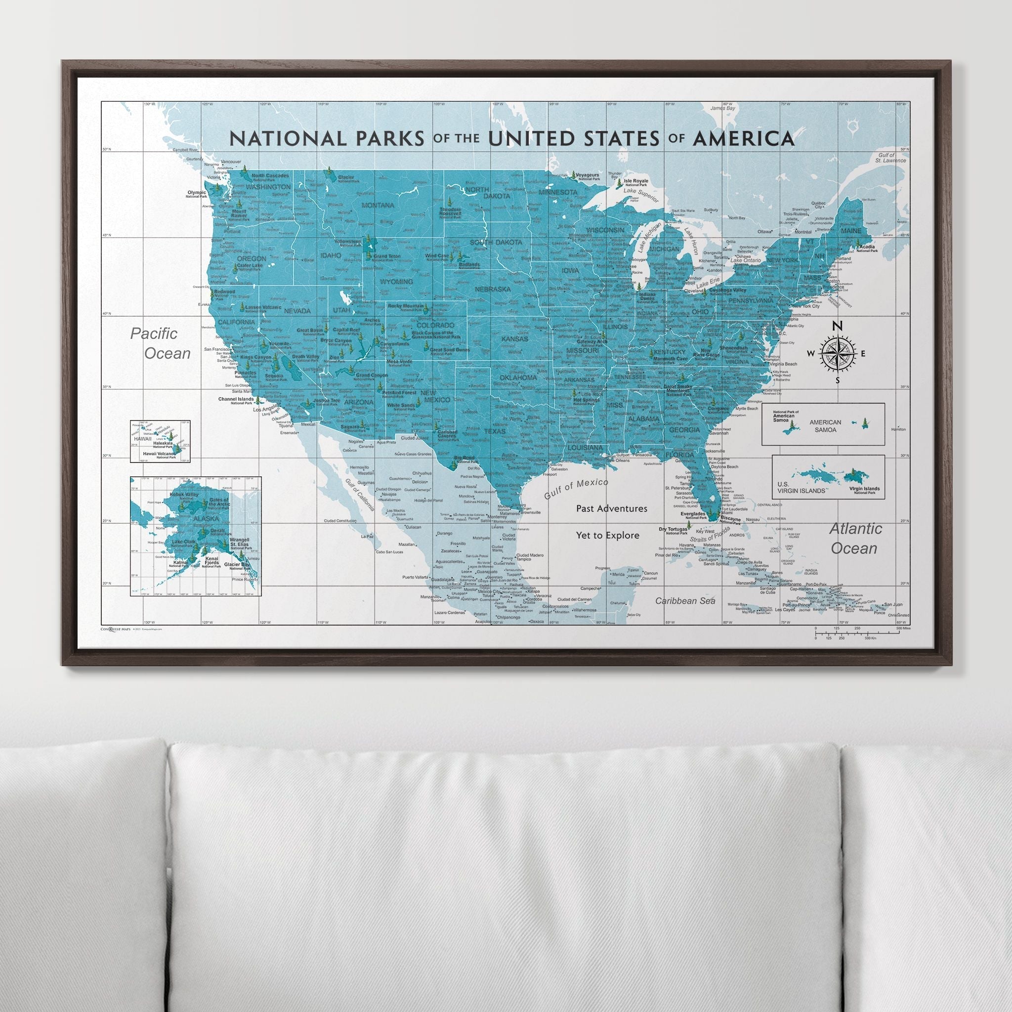 Push Pin National Parks Map - Teal Color Splash - Pins Included!