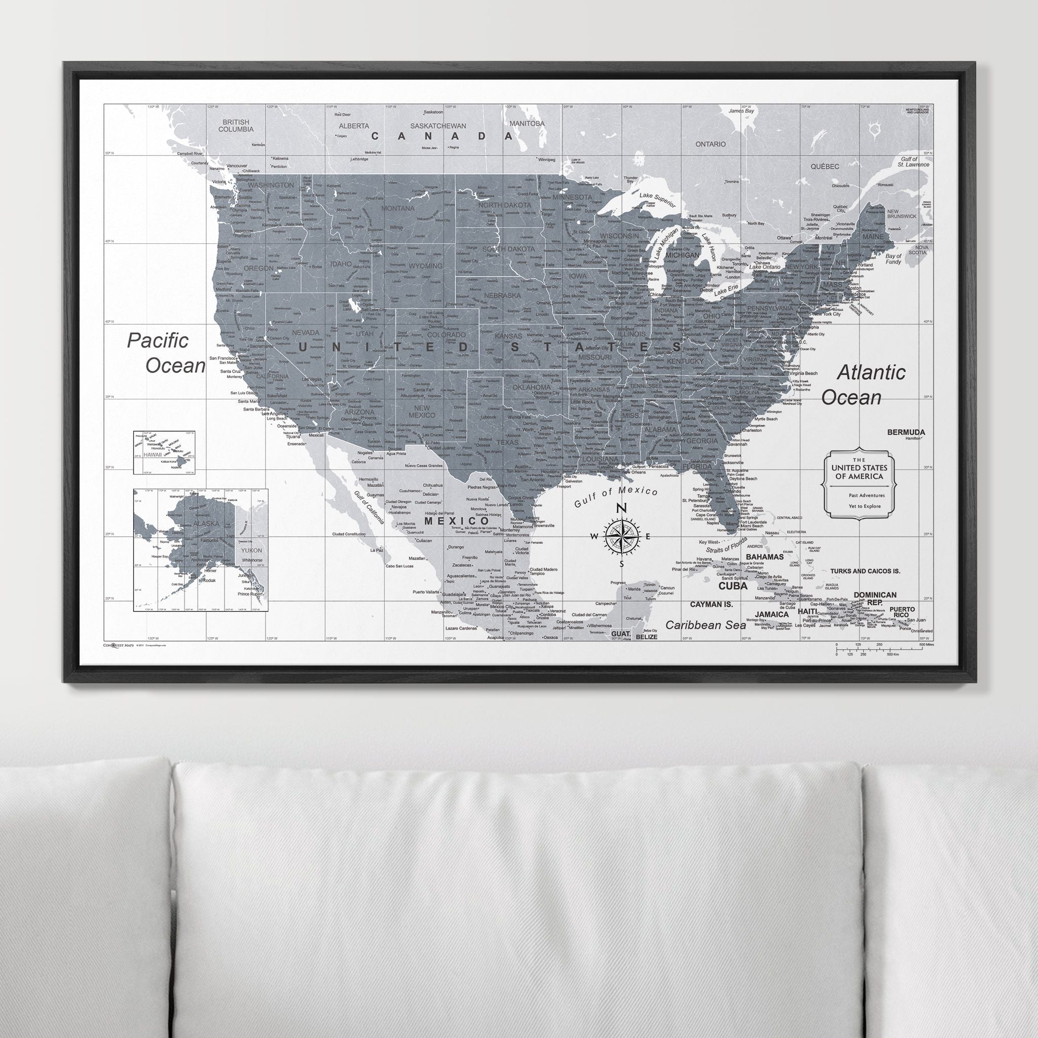 America the beautiful, from sea to shining sea! Track your road trips across the country or pin each state as you check it off the list with a USA push pin map.