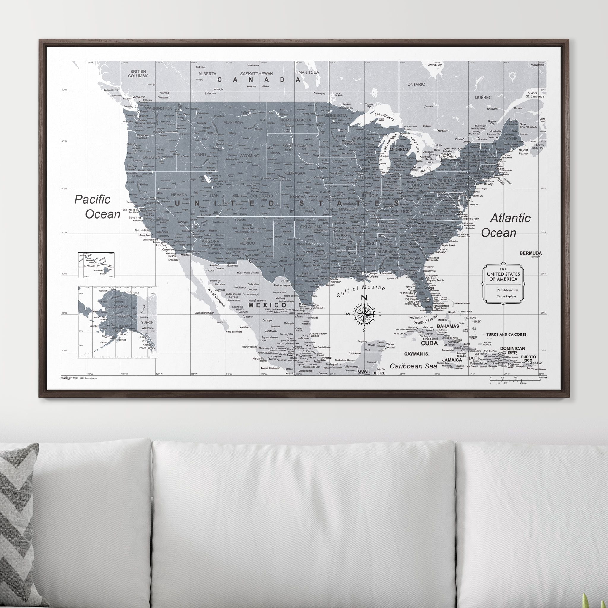 • Our push pin maps come with two complimentary boxes of push pins in your choice of colors. Each box contains 50 pins.