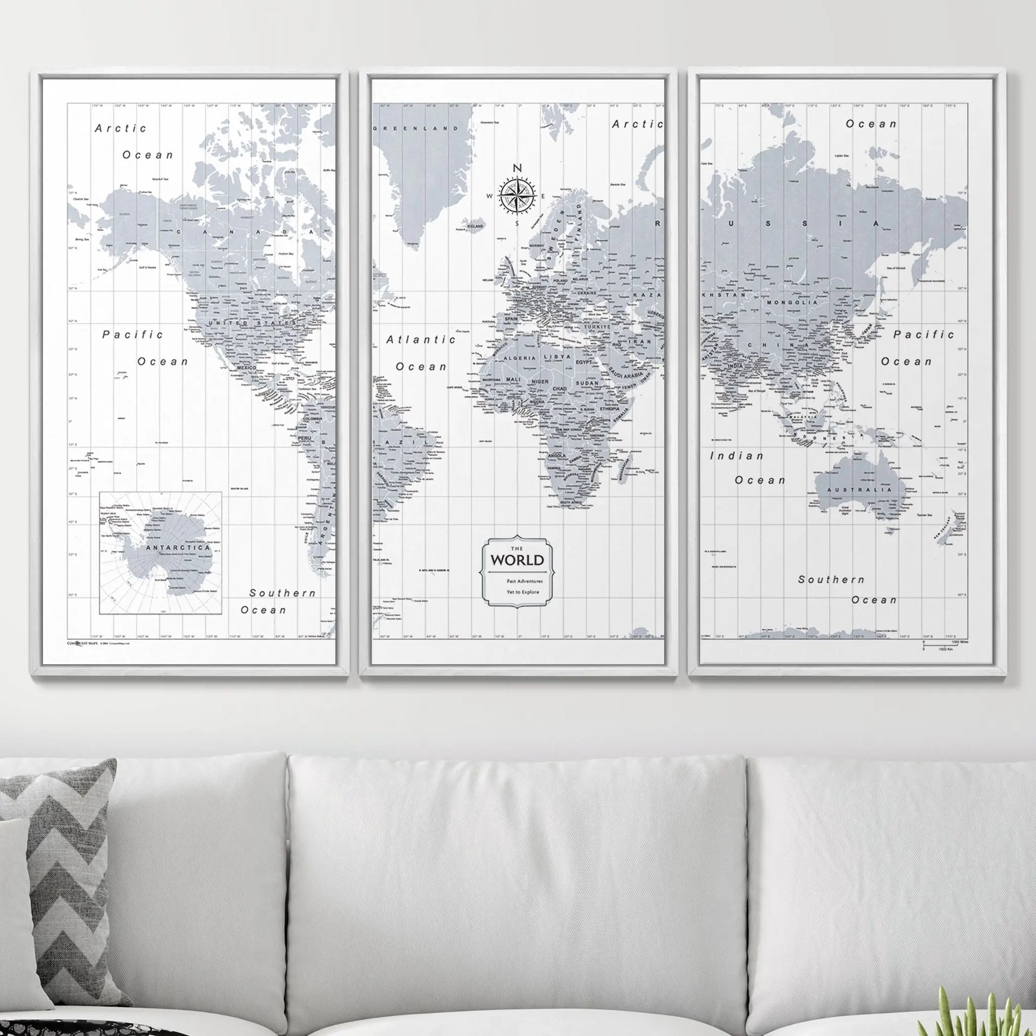 The Light Gray Color Splash world map is a strong and steady hue, representing neutrality and balance in your favorite room.